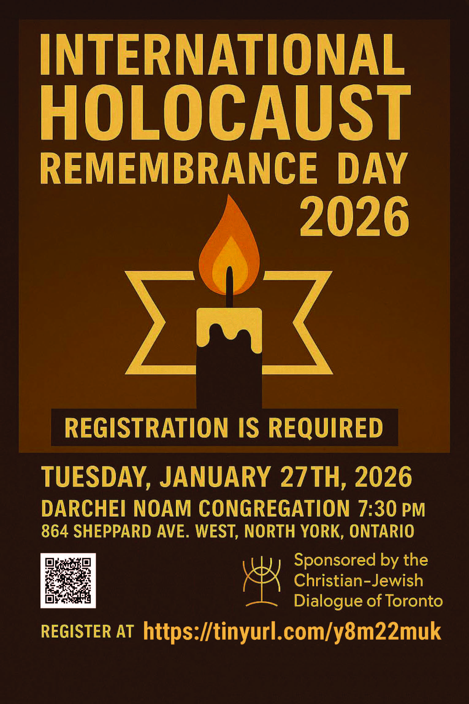 On this International Holocaust Remembrance Day, we gather as people of faith and goodwill to remember the six million Jews who were murdered in the Shoah, along with the countless others whose lives were destroyed by hatred and indifference. Together, we honour the survivors who have carried memory through courage and testimony, and we reaffirm our shared responsibility to stand against antisemitism, racism, and all forms of intolerance. Through music, scripture, testimony, and prayer, this service invites us to remember the past with reverence, to cherish the resilience of the human spirit, and to renew our commitment to building a world rooted in justice, compassion, and peace. Even in the shadow of great loss, the light of memory remains — calling us to lives of empathy, vigilance, and hope. This event will be recorded. Register Here |