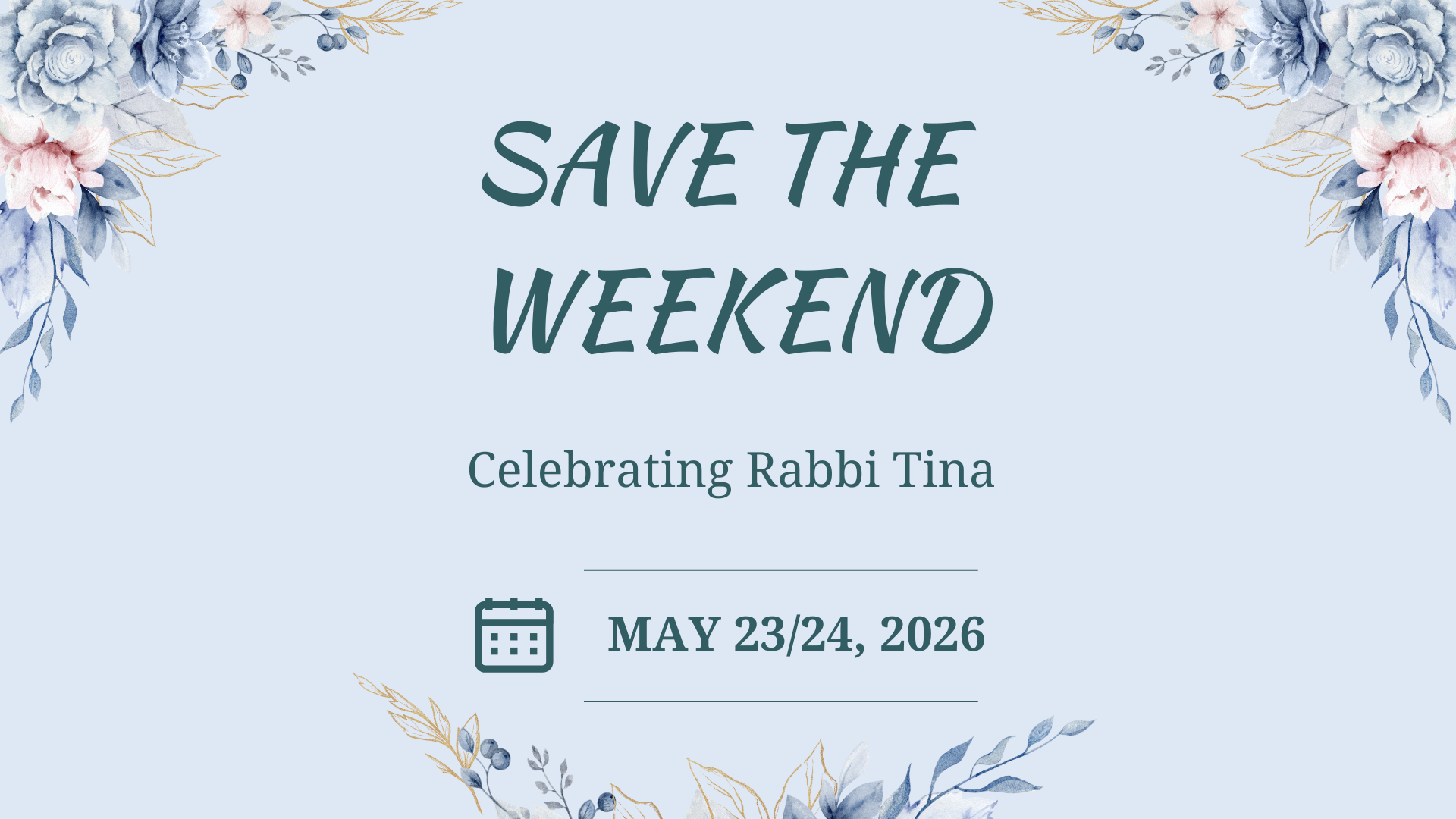 As the congregation is aware, Rabbi Tina Grimberg will be retiring in June 2026. We are in the midst of planning events to honour and celebrate our beloved Rabbi.  Please save the weekend of May 23/24, 2026. This exciting weekend will include a special Shabbat, a Rabbi Tina-led learning session, culminating in a gala-evening on the 24th. More details to follow.